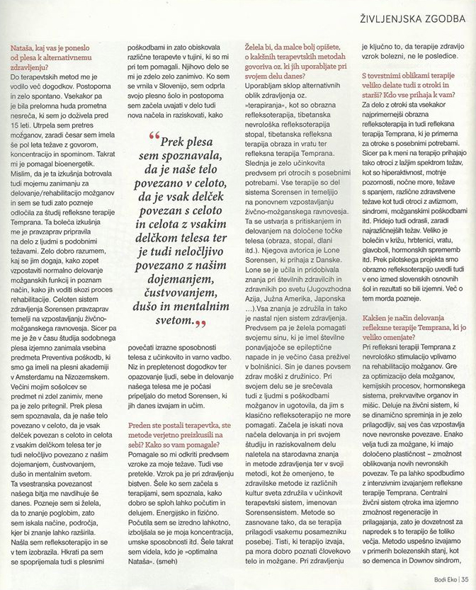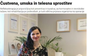 Objave v medijih Video Planet TV, Jutro na Planetu 26. marec 2024 Planet TV, Jutro na Planetu 26. september 2022 Ženska s konceptom 14. maj 2021 Ljubljana TV 12. april 2021 Klepet ob kavi 14. september 2020 RTVSLO, oddaja Dobro jutro 29. junij 2020 RTVSLO, oddaja Dobro jutro 27. maj 2019 RTVSLO, oddaja Dobro jutro 16. nov. 2015 RTVSLO, oddaja Dobro jutro 19. maj 2015 RTVSLO, oddaja Dobro jutro 3. julij 2015 Planet TV, oddaja Danes 6. april 2015 RTVSLO, oddaja Infodrom 2. april 2015 RTVSLO, oddaja Dobro jutro 11. april 2014 Revije Viva, medicina in ljudje 18. julij 2023 Viva, medicina in ljudje 13. julij 2023 Nedeljske novice 17. februar 2022 Onaplus avgust 2020 Suzi april 2018 Bodi eko julij 2016 Lepota in zdravje Lisa 17. december 2015 Lisa številka 37, 2012 Lepota in zdravje Na zdravje Zdrave novice Radio Prvi program Radia Slovenija, oddaja Med štirimi stenami Spletne objave Bogastvo zdravja 27. november 2024 Slovenske novice 1. februar 2021 Seniorji.info 12. junij 2019 Mind-portal.si 1. junij 2019 Zadovoljna.si 23. maj 2019 Sensa.si 24. april 2019 Onaplus 13. junij 2018 Onaplus 18. maj 2018 Onaplus 8. maj 2018 Slovenske novice 26. april 2018 Ženska.si 22. januar 2018 Aktivni.si 1. januar 2016